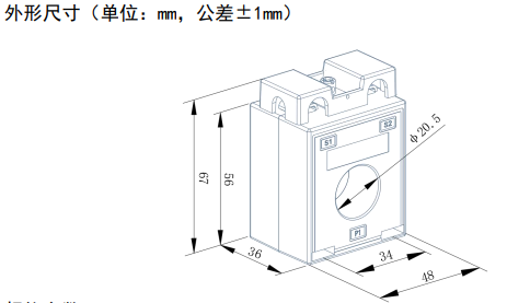 本產品采用透明蓋板設計,外形美觀小巧,接線方便,能清楚看到二次引線接線情況。圓孔設計,專門用于線纜,作為交流電流信號采集元件,一般與電氣測量儀表配套使用。