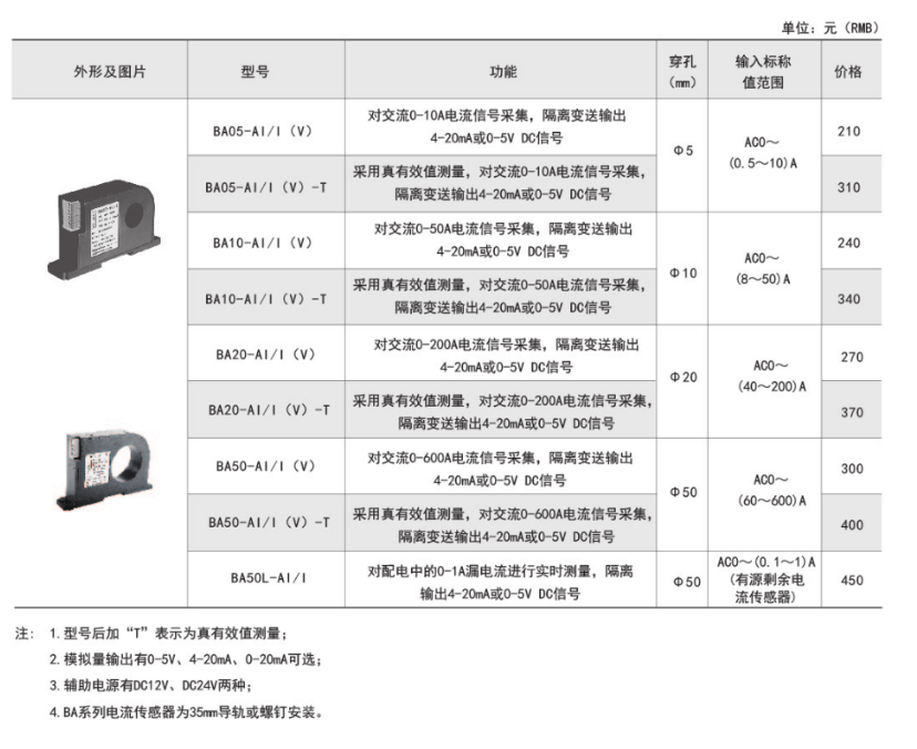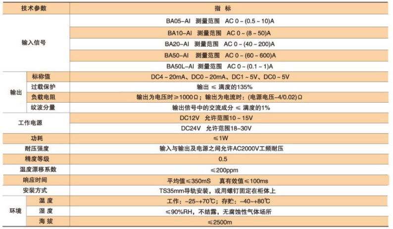 BA系列交流電流傳感器