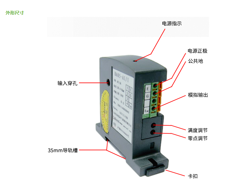 BA系列交流電流互感器 輸入0-600A輸出4-20mA/0-10V