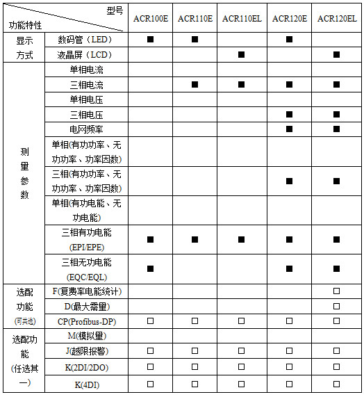 注:“■”為標(biāo)配功能,“□”為選配功能。