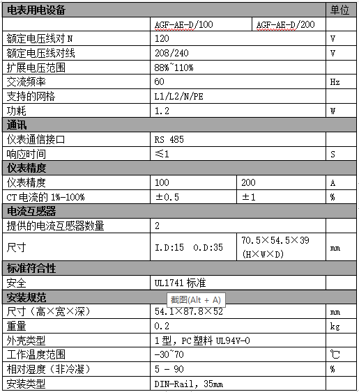 AGF-AE-D/200北美市場UL認證光伏逆變器配套用電能表