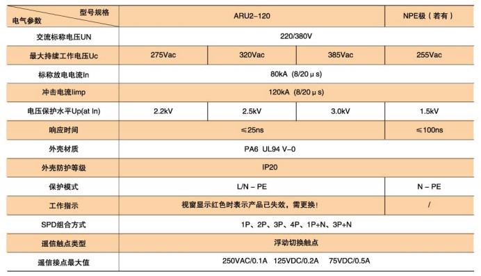ARU2-120型SPD技術參數