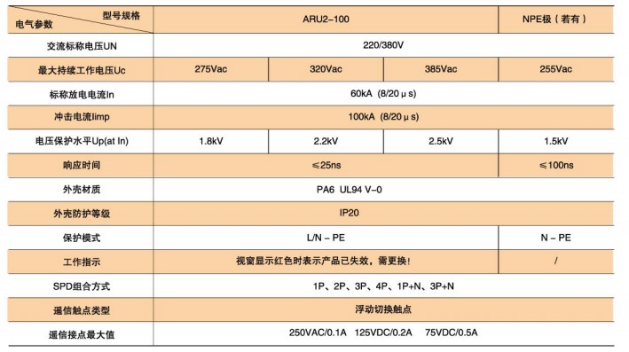 ARU2-100型SPD技術參數