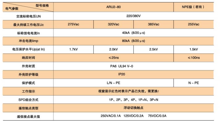 ARU2-80型SPD技術參數