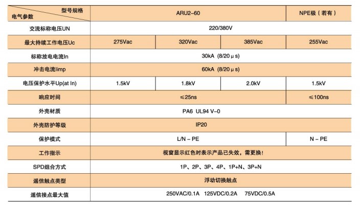 ARU2-60型SPD技術參數