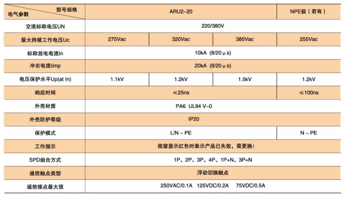 ARU2-20型SPD技術參數