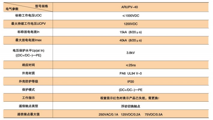 ARU2-40型SPD技術參數