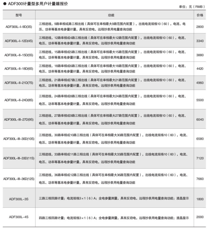 ADF300系列多用戶計量箱是一種電子式智能化多用戶電能表,設計采用一戶一計量方案,具有計量準確度高、戶與戶之間計量互不干擾、集中安裝、集中管理優勢。可以同時計量12戶三相、36戶單相、單/三相回路混合用電狀況。