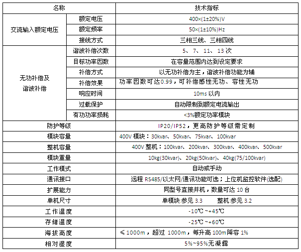 適用于頻率50Hz電壓0.4kV電網(wǎng)的無功功率動態(tài)補(bǔ)償。
